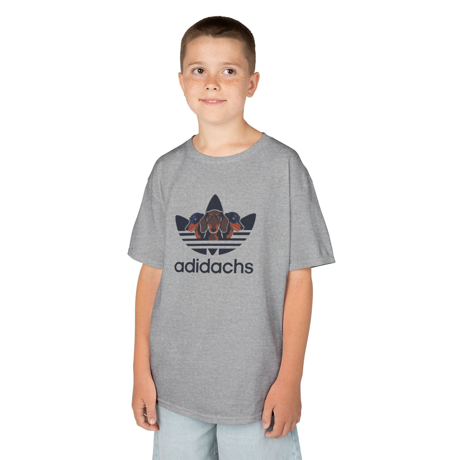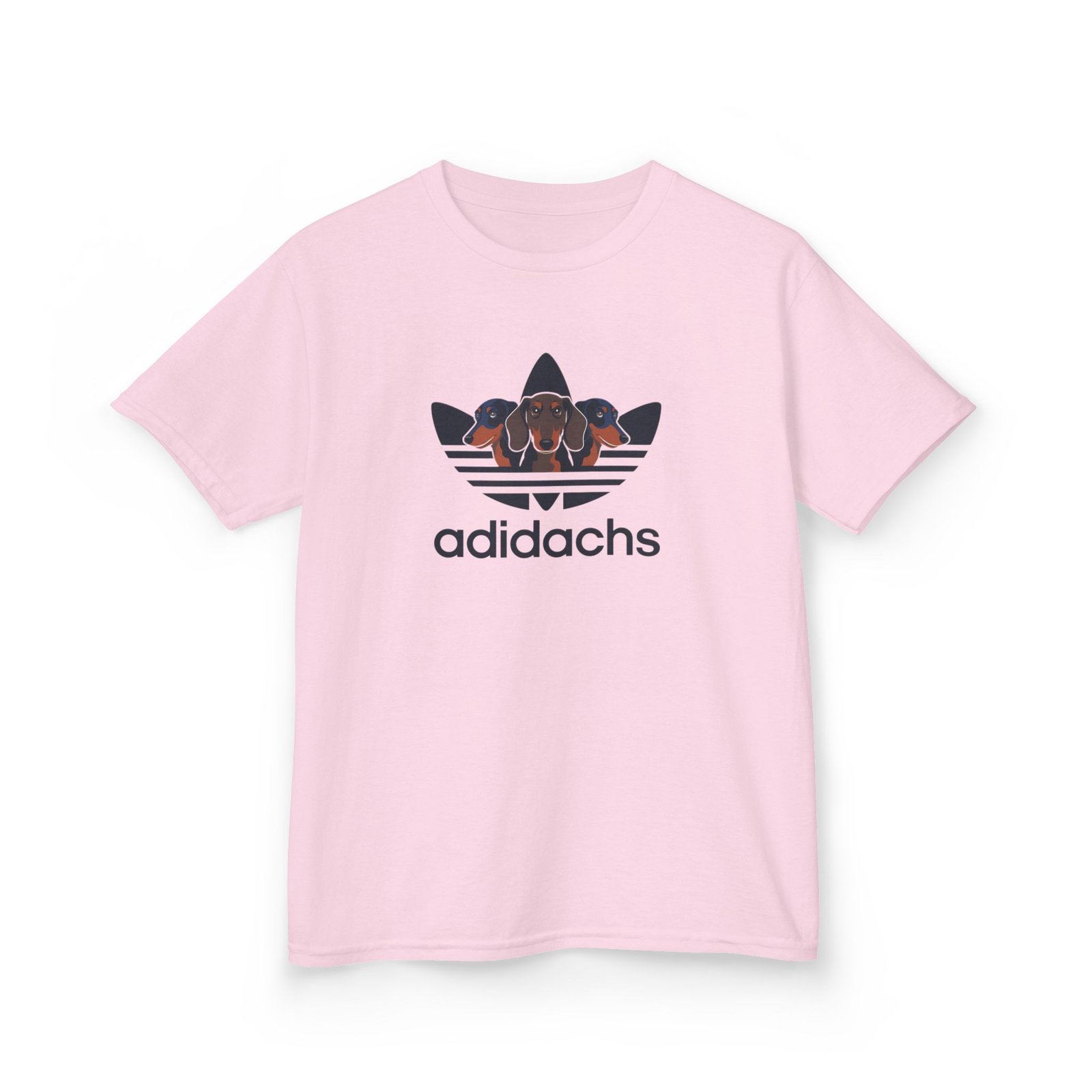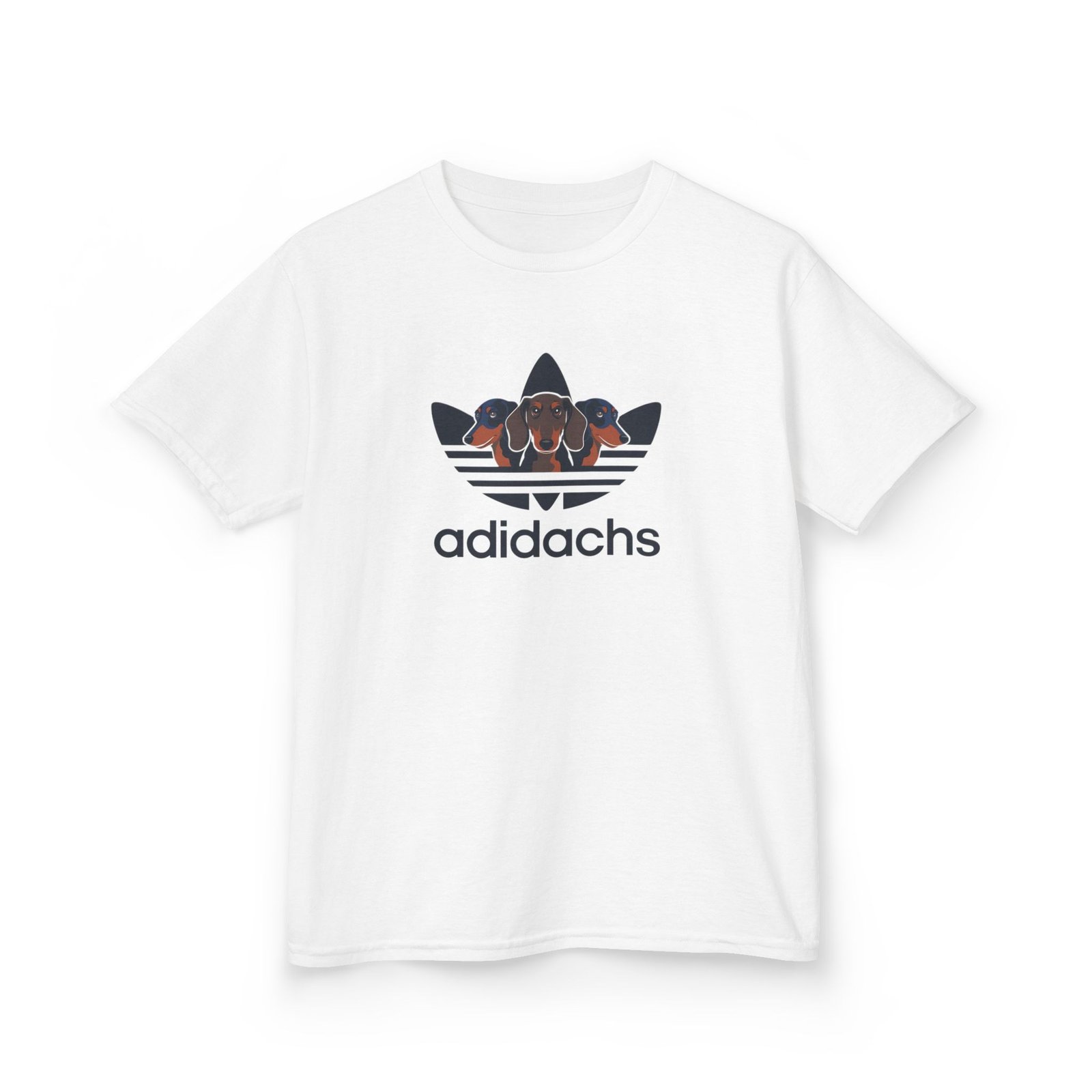 A playful, soft tee that brings a wink of humor and sporty style to a child’s everyday wardrobe. The midweight cotton feels gentle against young skin while the classic crew neckline and straight fit make it easy to layer or wear on its own. The front graphic pairs a retro trefoil silhouette with a cheeky dachshund motif for a casual, spirited look that kids and parents both notice. Breathable, durable, and made with attention to stretch and shape retention, this shirt moves with active days at the park, lazy weekends at home, or informal family outings.